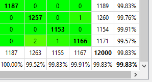 - 顯示混淆矩陣(顯示預測與真實結果交集的圖表)。可交互選擇單個圖像。